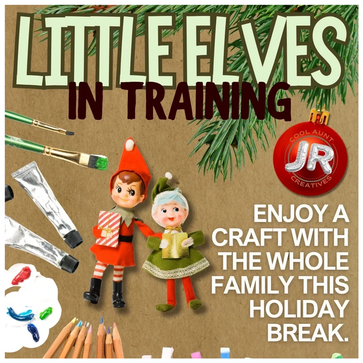 Little Elves in Training is our magical, kid-friendly branch of Cool Aunt Creatives JR—designed especially for young makers who love to explore, imagine, and create. These workshops offer hands-on, holiday-themed projects that let kids dive into crafting while building confidence, fine motor skills, and creative expression.